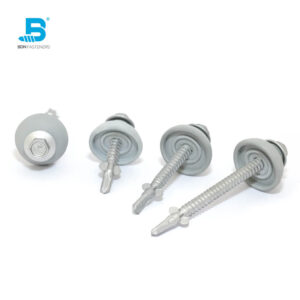 Features: 60mm (5/16′) Hex washer flanged head self-drilling fastener with expansion hole cutting saw and large dome EPDM washer